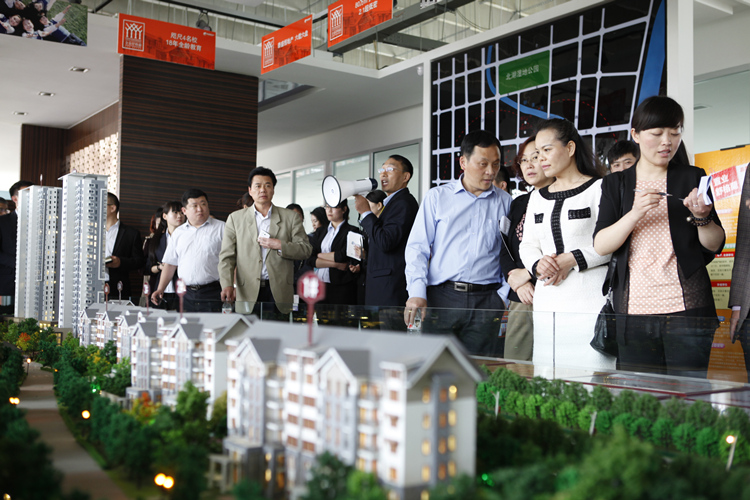 參觀完后,大家乘車前往舒格蘭。沿著風光旖旎的濱河西路,公司車輛與員工車輛組成了長長的車隊,蔚為壯觀。來到舒格蘭。吳萬源經理向大家介紹了舒格蘭項目的位置和北城新區(qū)的城市規(guī)劃。來到景觀示范區(qū),大家參觀了樹木叢生、綠草如茵的園林景觀以及奢華典雅的樣板間。