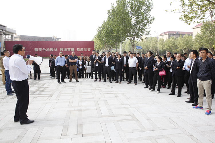 上午9時,在公司副董事長孫鵬先生的帶領下,大家來到金泰華府項目。“歡迎公司領導和各位同事來到金泰華府項目!”華府項目部經理姬常寶手持擴音器表示歡迎。啟翔金泰華府項目經理吳維龍向大家詳細介紹了金雀山的位置、歷史等情況。跟隨工作人員,大家還參觀了華府沿街商業(yè)、臺地園林景觀及清水樣板間。