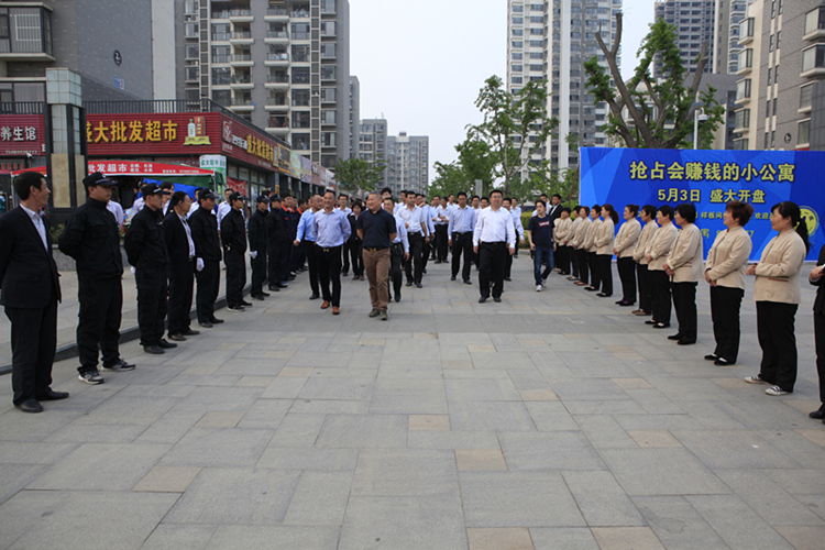 下午16時,公司人員來到最后一站——金泰華城項目,先后參觀了華城案場、華城二期、華城一期及奧晟物業(yè)。在金泰華城一期和二期入口處,奧晟物業(yè)公司的員工分列站在道路兩側,統(tǒng)一的著裝,整齊的隊列、熱烈的掌聲歡迎大家的到來,很好的展示了物業(yè)人員的風采。