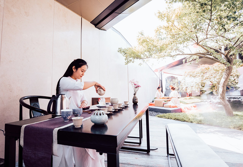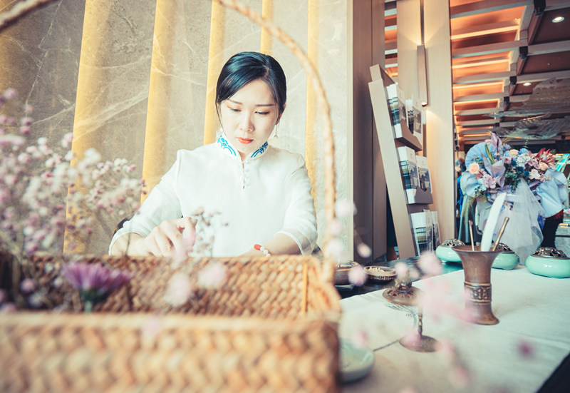 除了沙盤講解與入室品鑒,金泰·錦府營銷中心開放當日更營造了一個古樸典雅與現代風尚完美融合的新意境。一首古箏曲,滿園傳詩意;曲水流觴處,遍地是花香;中式風骨韻,潤物細無聲。一條蜿蜒的水景溫柔的載著這五顏六色的花瓣將琴棋書畫茶酒花送往心中的遠方,向眾人展現最淋漓盡致的美。另有桃花釀、桂花酥、英俊帥氣調酒師;調香師,茶藝師,圍棋美女見真章;書法家,國畫家,字畫之中有真諦……