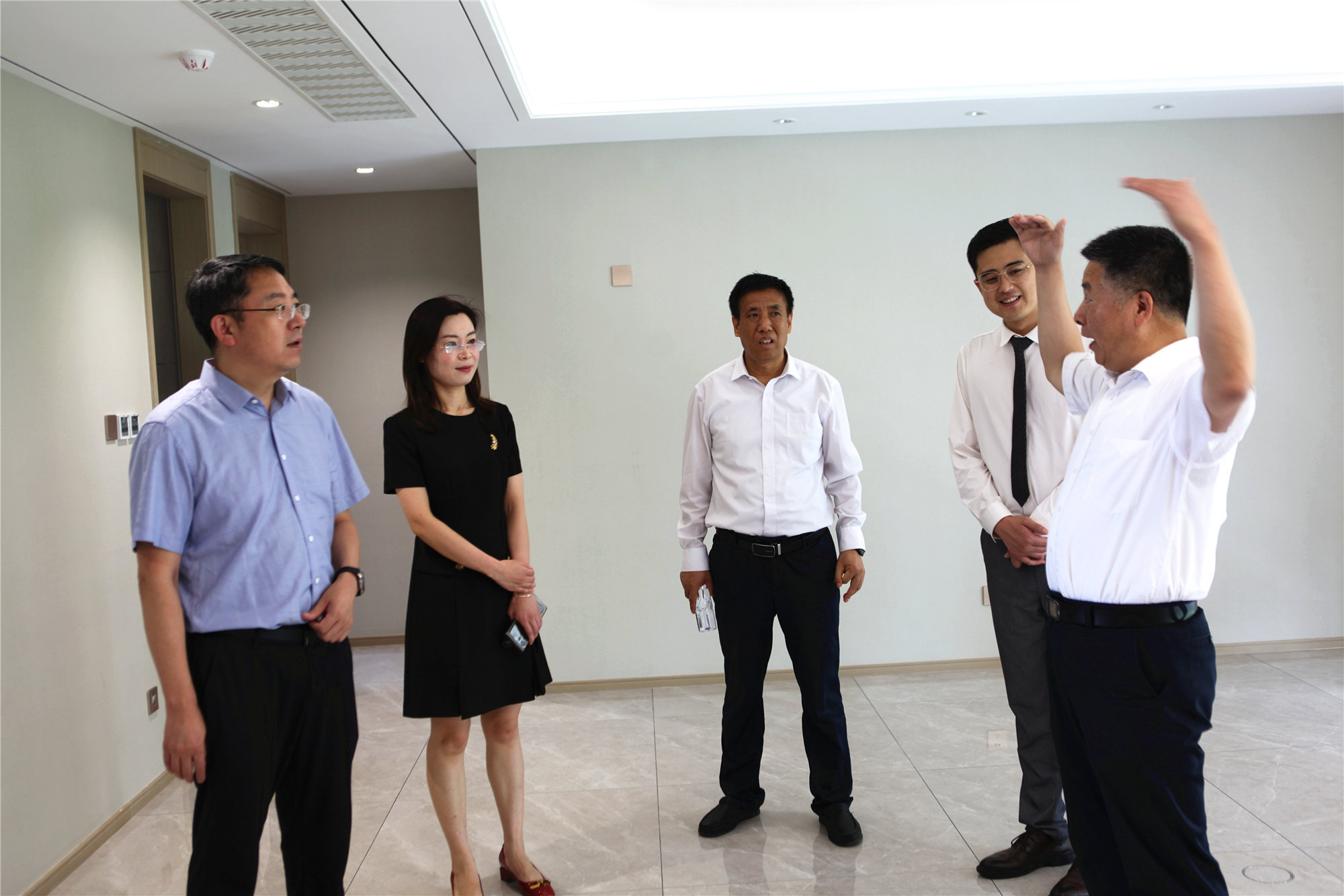 6月29日下午,山東省住房和城鄉建設廳二級巡視員都昌林、房地產管理處副處長李曉、臨沂市住建局城鄉建設服務中心主任孟慶民一行蒞臨金泰錦府參觀指導,公司有關領導全程陪同。